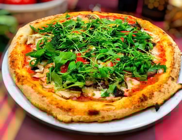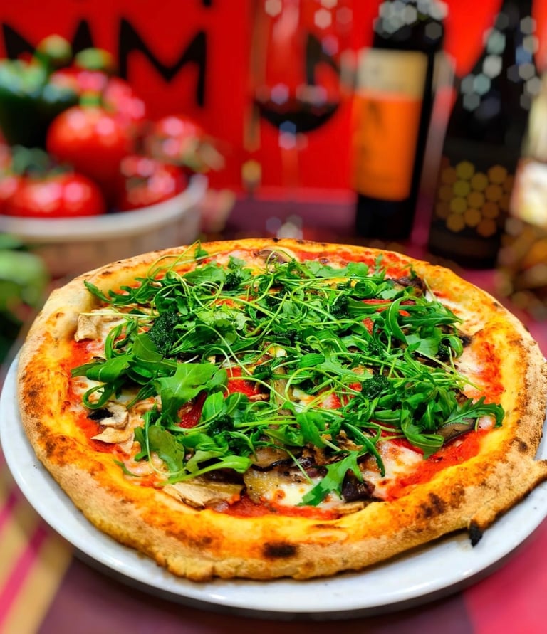Pizzas artisanales au feu de bois, saveurs d'Italie et d'Euskadi.